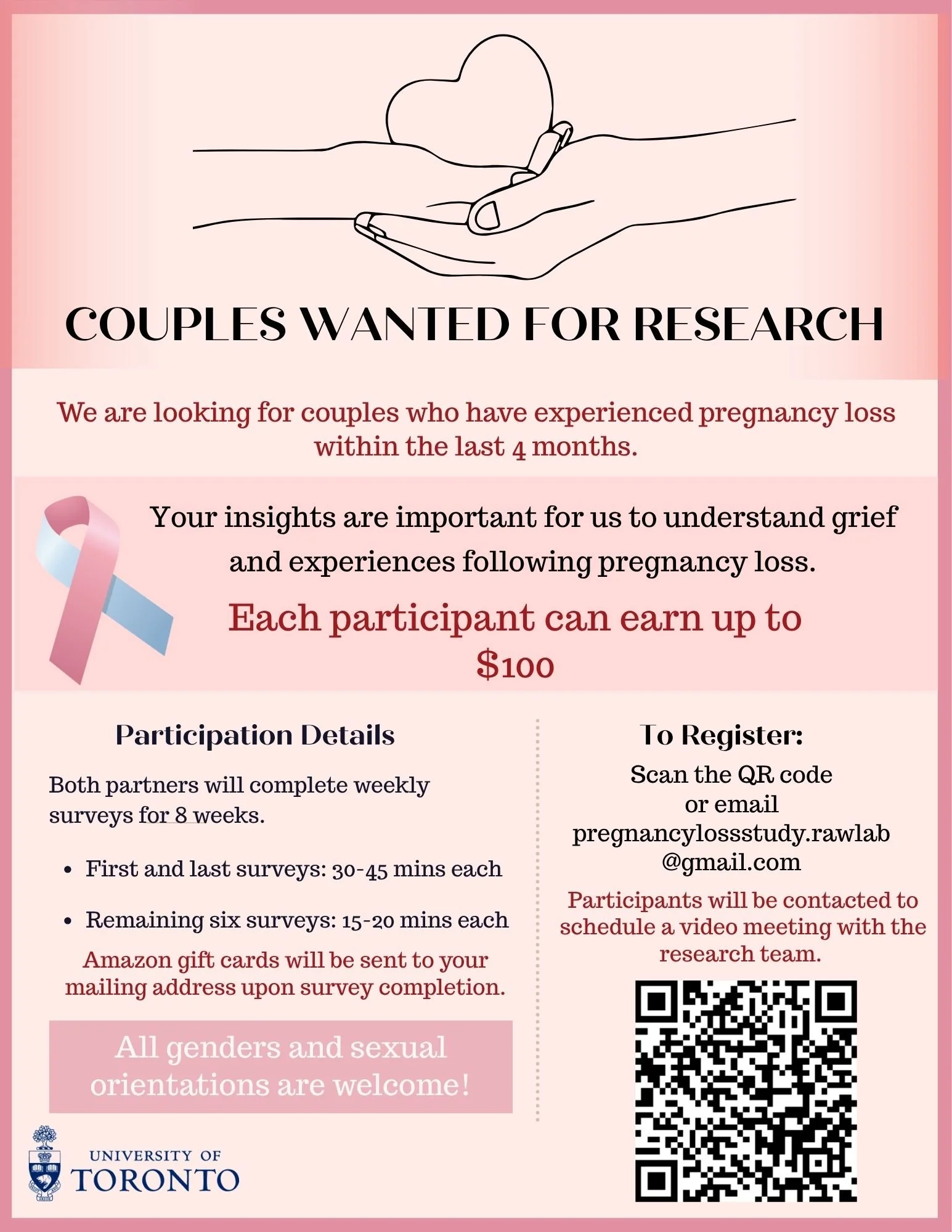 Please scan the QR code in the flyer on the left to complete our participant information form, or contact us at: pregnancylossstudy.rawlab@gmail.com.